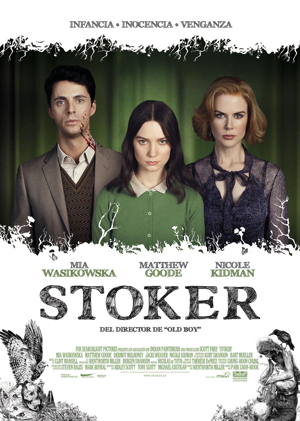 Ahora el amigo Chan-wook se ha hecho a las Américas, poco después de dar luz verde a un remake americano de su obra magna del que no sé mucho, sólo que hace tiempo se planteó a Will Smith para el papel protagonista, en la que puede ser fácilmente la peor decisión de la historia. Y como fruto de esta aventura llega a nuestras pantallas Stoker, la excusa por la que volví a entrar en una sala de cine tras un periodo de tiempo inadmisible, acaso traumatizado por lo último que vi (La Jungla 5. Un buen día para no gastarse una millonada en ataques al hígado), acaso impelido por la cantidad de mierda que ha copado últimamente la cartelera (¿cuántas mierdas ha estrenado Tom Cruise en lo que llevamos de año?).